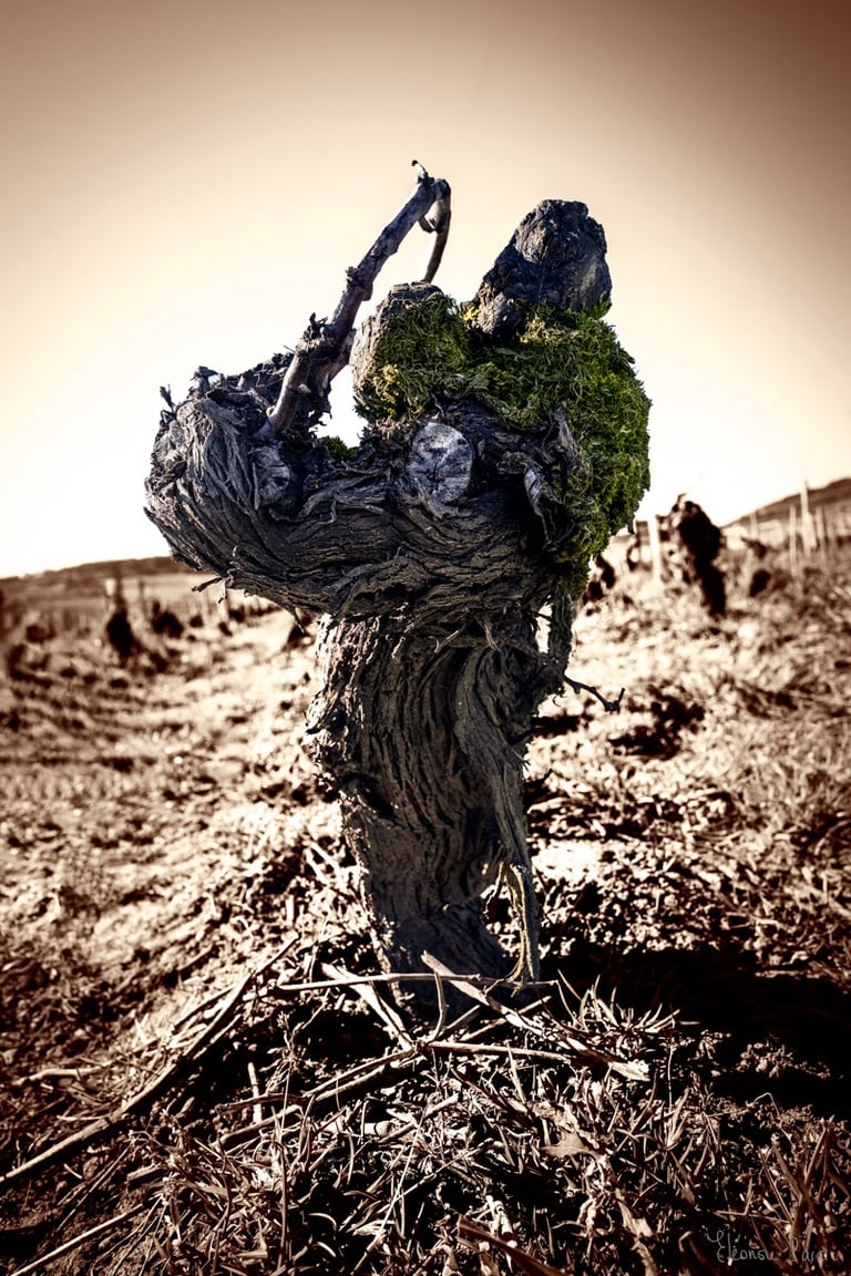 Les couleurs et contrastes renforcent cette dimension fantastique, transformant les ceps en esprits de la nature ou en créatures mythologiques. La série met en lumière la richesse symbolique de la vigne, à la fois plante nourricière et sculpture naturelle, qui devient le théâtre d’un imaginaire collectif. Le Bestiaire de Ceps invite ainsi à une relecture poétique du monde viticole, où l’ordinaire se mue en extraordinaire.